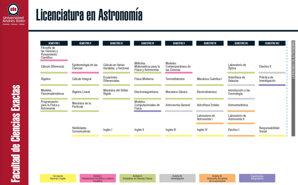 La misión del Programa de Licenciatura en Astronomía de la Universidad Andrés Bello es preparar graduados con una formación integral, con valores de excelencia y responsabilidad social, con sólidos y amplios conocimientos en el campo de la astronomía, dotados de una gran capacidad analítica y de autoaprendizaje para enfrentar problemas nuevos. El graduado contribuye al desarrollo científico- tecnológico del país, a través de la participación en forma activa en proyectos de investigación en ciencias básicas y/o aplicadas.
